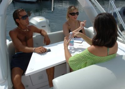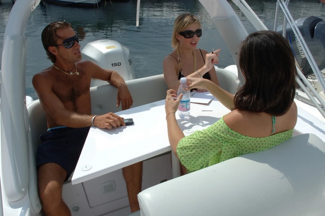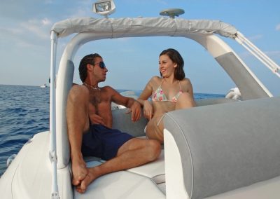 Retirez tous les remplissages des sièges du bateau et vous disposez d’une promenade spacieuse autour de la console centrale, laissez les remplissages à l’intérieur et vous disposez de deux très grands bains de soleil à l’avant et à l’arrière pour vous détendre avec vos amis et votre famille.