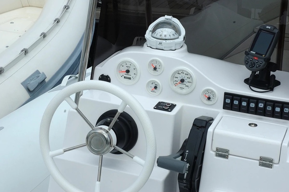 Console de pilotage avec pare-brise ombragé